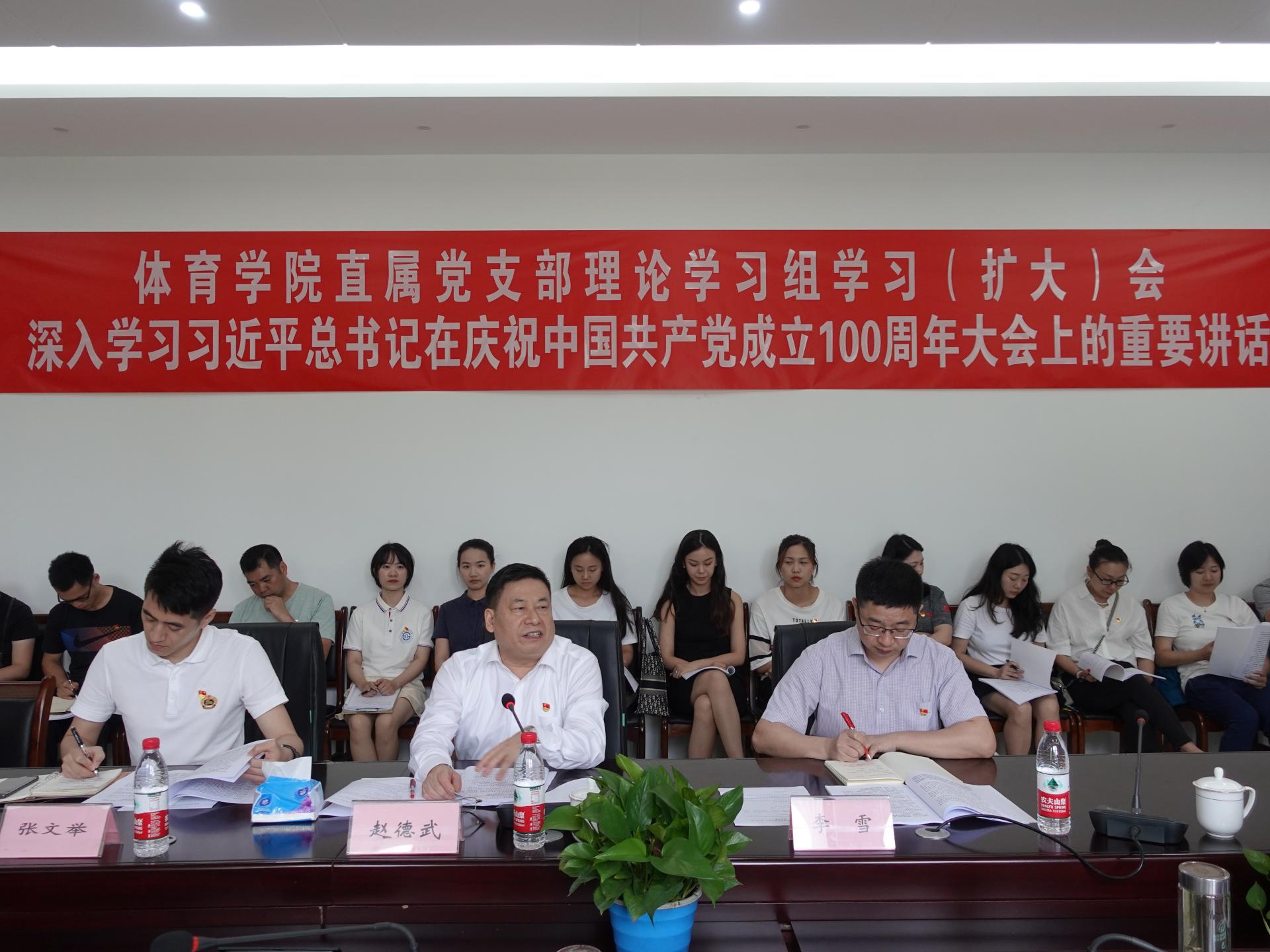 7月8日上午,博鱼官方网站(中国)集团有限公司召开专题学习会,深入学习习近平总书记在庆祝中国共产党成立100周年大会上的重要讲话。学校党委书记赵德武、党史学习教育第八指导组组长李雪、党委办公室副主任张文举、博鱼官方网站(中国)集团有限公司教工党员、二级部门负责人、入党积极分子参加会议。会议由直属党支部书记杨远波主持。