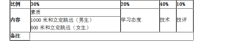 (2)技术部分。由各任课教师进行技术评定和身体素质达标考核。