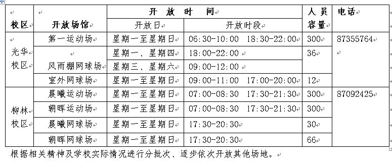 为认真贯彻落实学校新冠疫情防控领导小组工作部署,满足博鱼官方网站(中国)集团有限公司师生员工体育锻炼需求,按照国家、教育部、教育厅关于学生返校工作相关要求,参考其他兄弟院校的体育场馆开放办法,本着科学防控、精准施策、“减少人员聚集”、严防体育场集聚性风险原则,经学院研究制定本管理办法。稳妥有序开放光华、柳林两校区部分运动场、风雨棚网球场、室外网球场等通风效果好、方便人流管控的体育场所,暂不开放室内场馆、有身体接触和对抗激烈的集体性运动场地(含篮球、足球等)以及游泳池等。