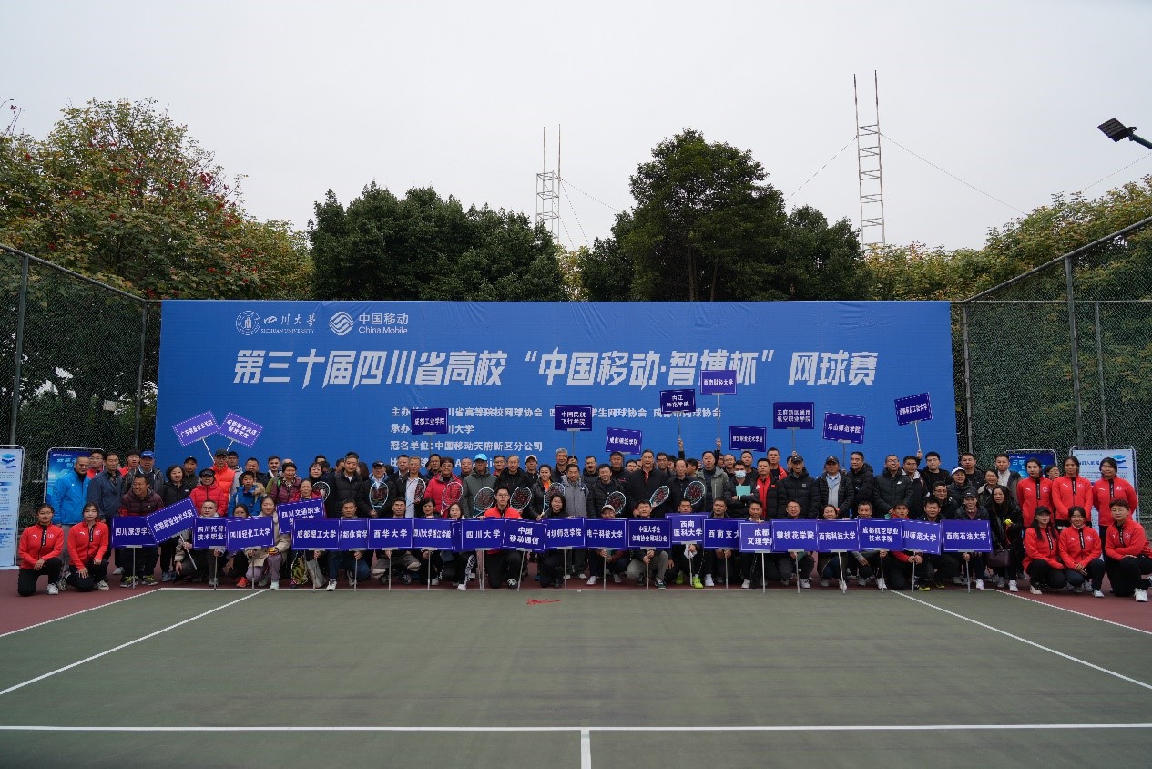12月3日, 2023年第三十届四川省高校“中国移动•智博杯”网球赛在四川大学江安校区拉开帷幕。本次比赛共吸引了来自省内30余所高校和中国移动公司共计300余名运动员参加比赛。