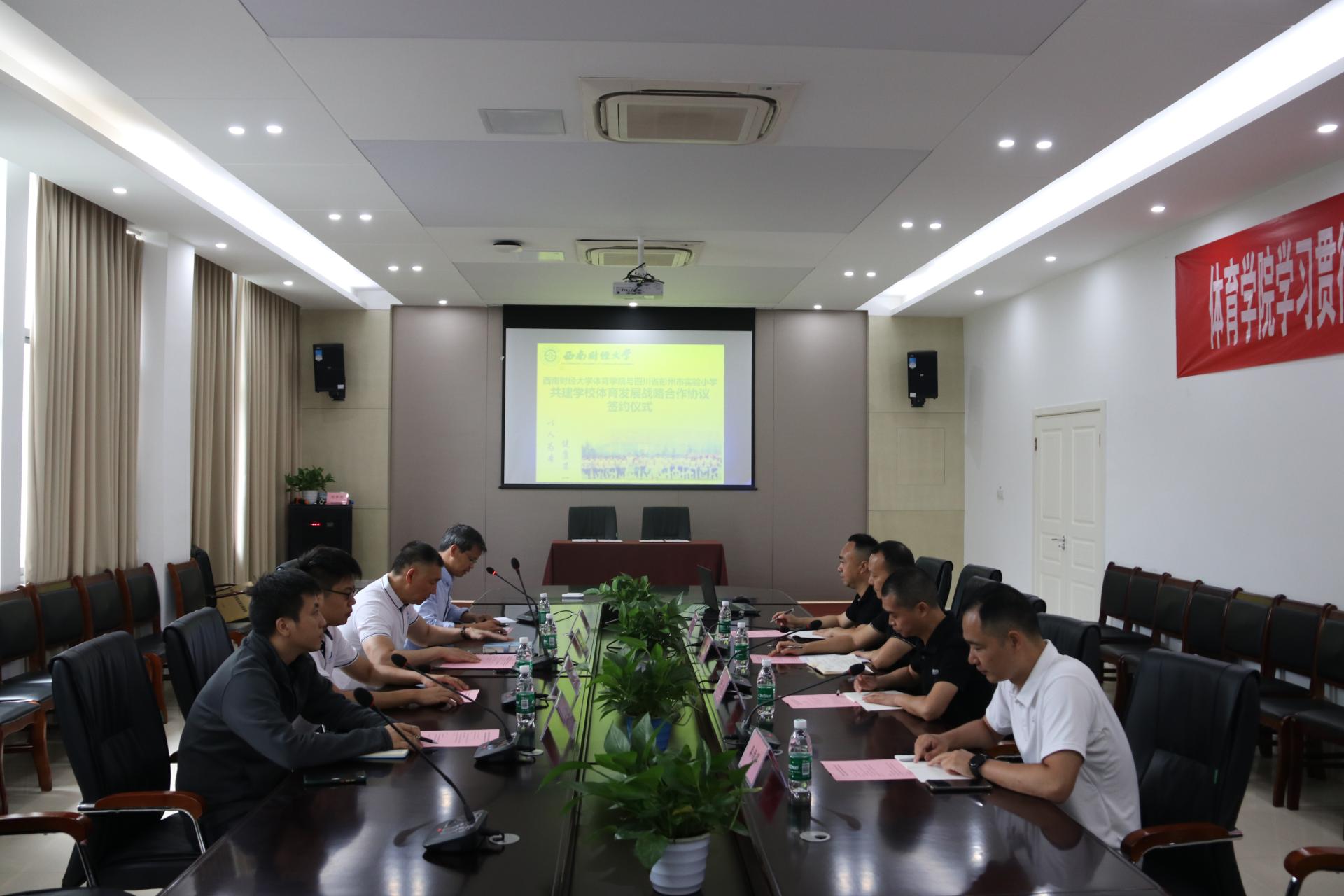6月6日,西南财经大学博鱼官方网站(中国)集团有限公司与四川省彭州市实验小学共建学校体育发展战略合作协议签约仪式在博鱼官方网站(中国)集团有限公司会议室举行。彭州市实验小学校长胥勇、主任胡宇、体育组组长王潜,教师代表秦德辉;博鱼官方网站(中国)集团有限公司院长杨远波、副院长陈丛刊、院长助理蔡兴林、体育与经济管理研究中心副主任付磊出席签约仪式。