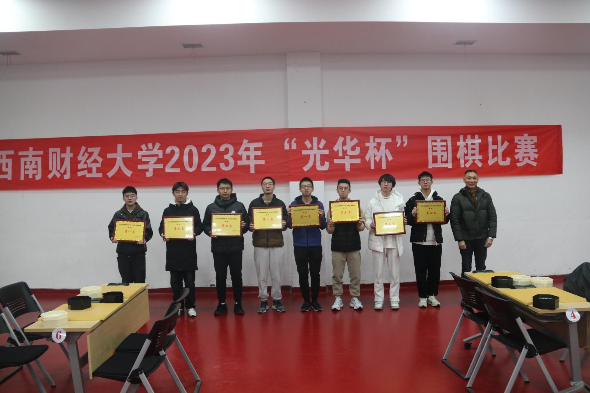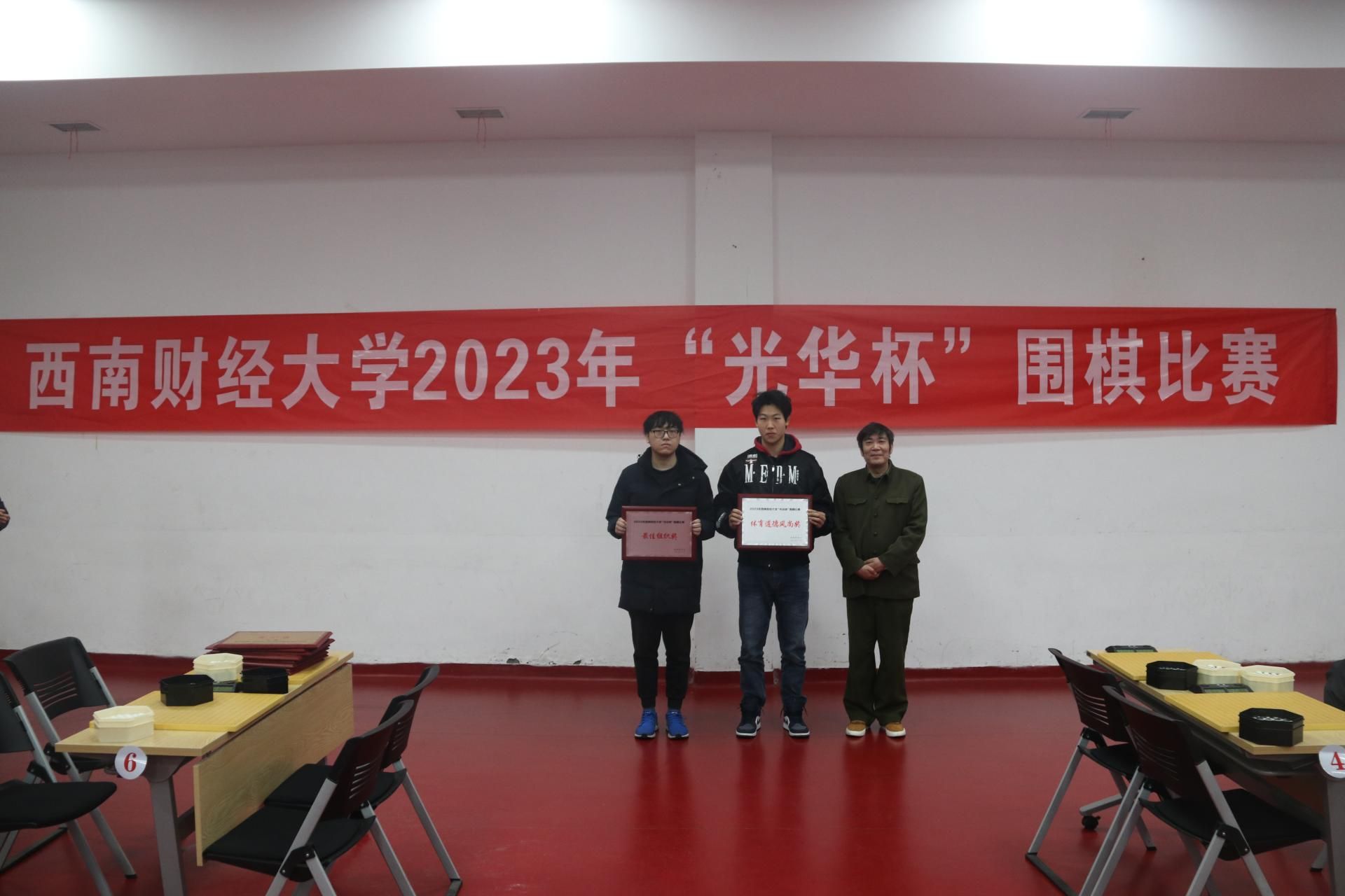 12月17日下午,“礼赞新时代·奋进新征程,迎百年校庆·铸西财辉煌” 2023年西南财经大学“光华杯”首届围棋比赛颁奖仪式在柳林校区光华体育馆举行。博鱼官方网站(中国)集团有限公司杨远波院长、阴涛副院长出席并为获奖单位及个人颁奖。