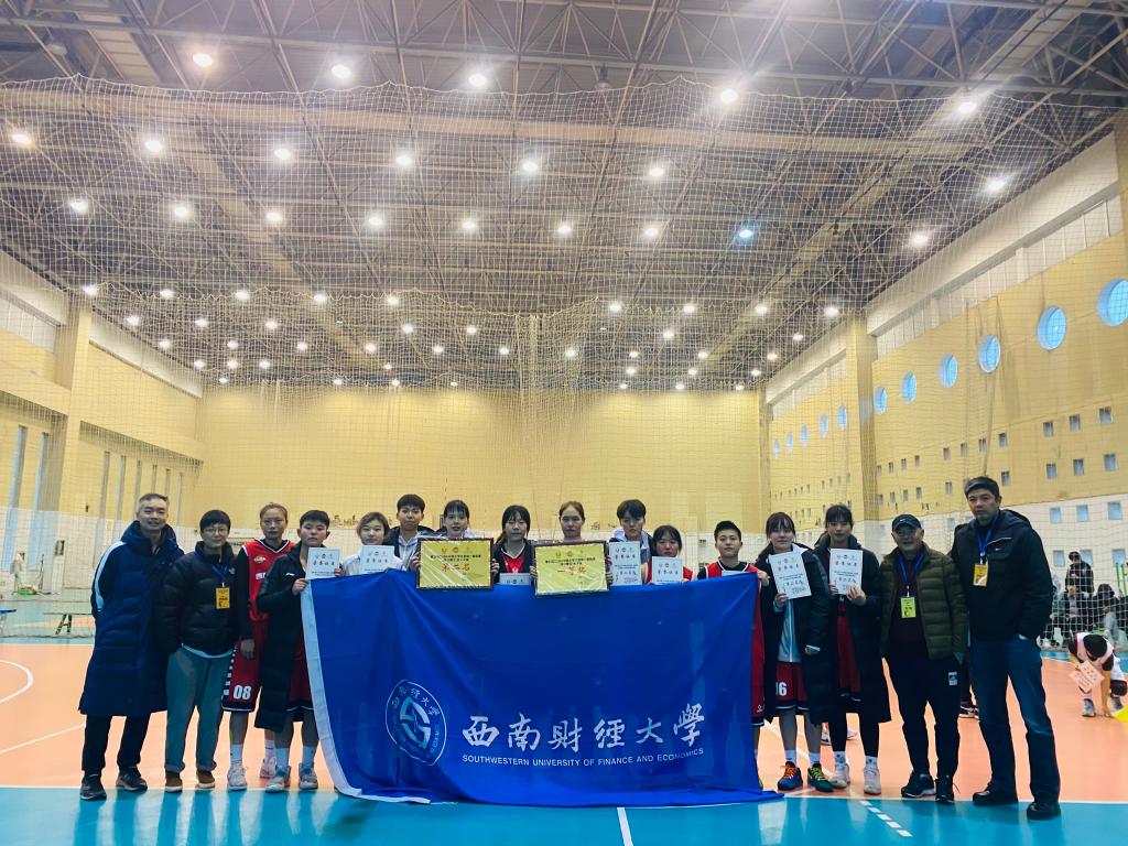 在方威、黄茂洁、李春晖三位教练的带领下,博鱼官方网站(中国)集团有限公司在小组赛中分别战胜成都博鱼官方网站(中国)集团有限公司、西南医科大学、西南交通大学,以小组第一晋级半决赛。半决赛对战西华师范大学,队员们准备充分,在场上接连打出漂亮的快攻,以大比分领先杀入决赛。在最后一场对阵东道主四川师范大学的冠军争夺战中,队员们奋力拼搏,每球必争,每分必抢,局面一度呈现焦灼状,比分多次缩小至十分以内;但第四节川师接连命中四计三分球,再次将比分扩大,最终惜败。黄茂洁被评为“优秀教练员”、彭思蒙、刘丙焕获得了“优秀运动员”称号。