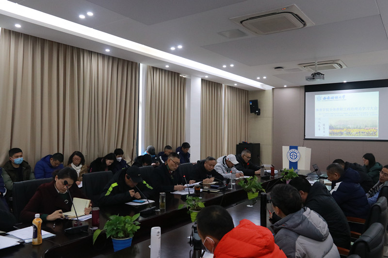 12月29日,博鱼官方网站(中国)集团有限公司在游泳池二楼会议室召开全体教职工政治理论学习会。本次学习会包含三个议题,一是深入学习贯彻全国及学校研究生教育会议精神,二是学习周永开等7名“优秀党员”的先进事迹,三是传达学习中共西南财经大学第十三届代表大会第三次会议精神。学院全体教职员工参会,会议由杨远波院长主持。