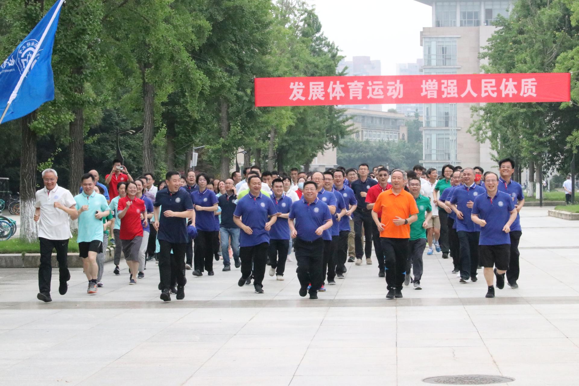 6月1日上午,在博鱼官方网站(中国)集团有限公司建校97周年纪念日到来之际,为充分展现师生健康向上的精神风貌,丰富校园文体生活,学校在柳林校区举行校庆“健康跑”活动。校领导赵德武、卓志、马骁、曾道荣、范卫宏、张邦富、李永强,全体中层干部、教职工、校友代表及学生代表参加健康跑。
