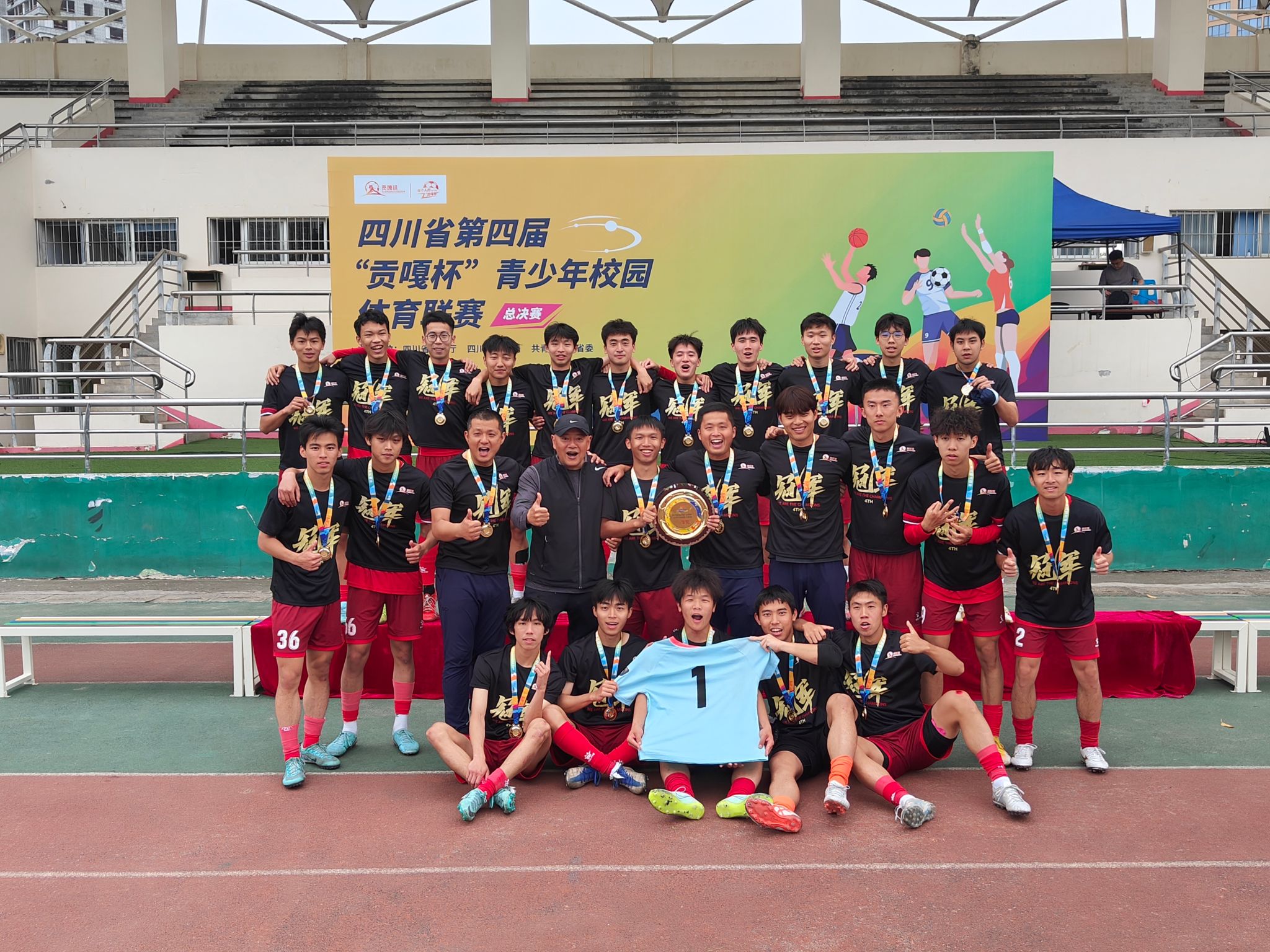 “贡嘎杯”青少年校园体育联赛是目前四川省最高水平青少年体育竞赛。本届联赛足球项目的竞赛从2023年11月持续到2024年6月。高校男子专业组比赛分为预赛和决赛两个阶段,来自全省45个高校、近1000名运动员参赛,博鱼官方网站(中国)集团有限公司高水平男子足球队经过10余场比赛的顽强拼搏,成功登顶“贡嘎之巅”,首夺“贡嘎杯”高校男子专业组冠军。