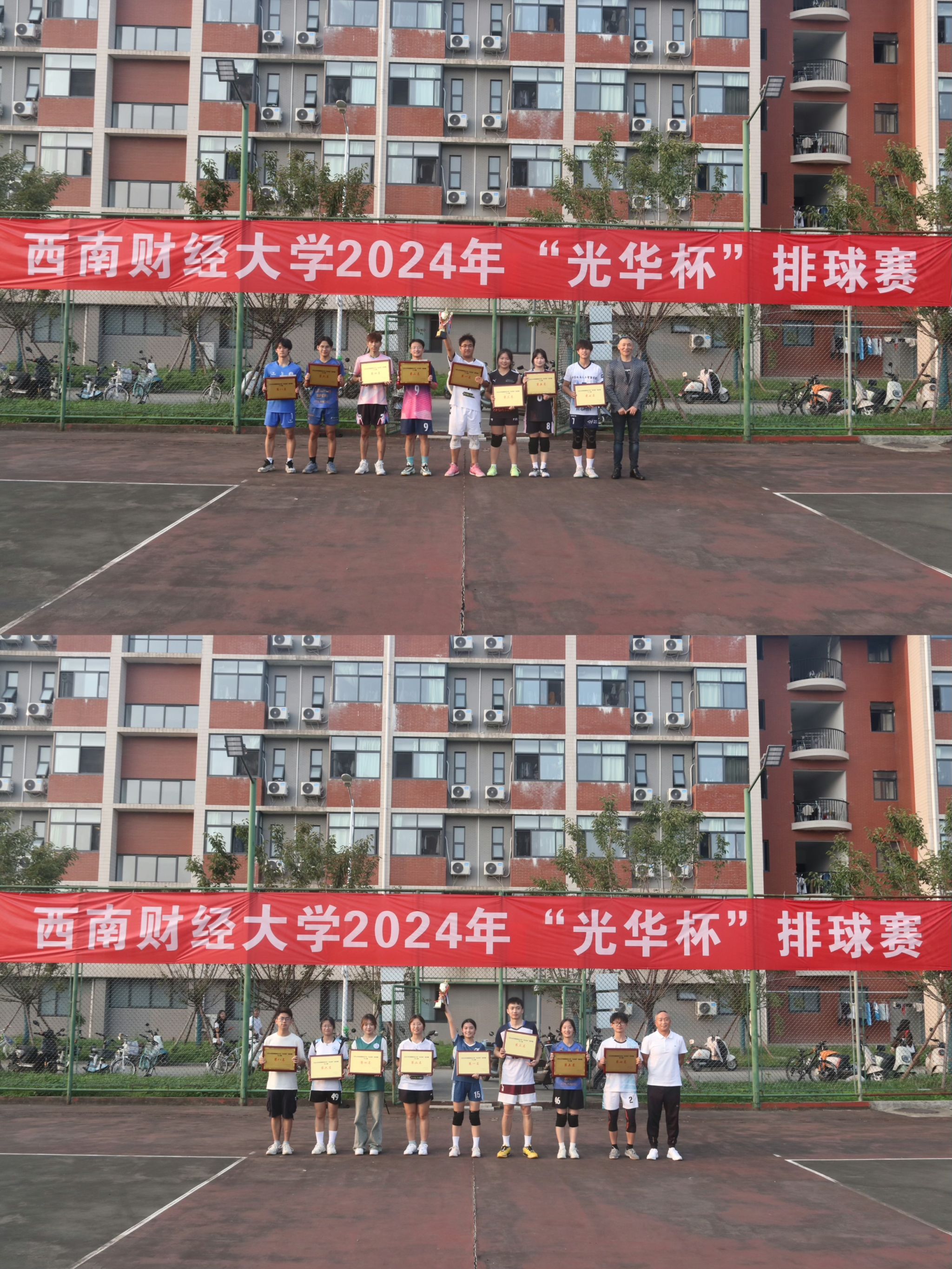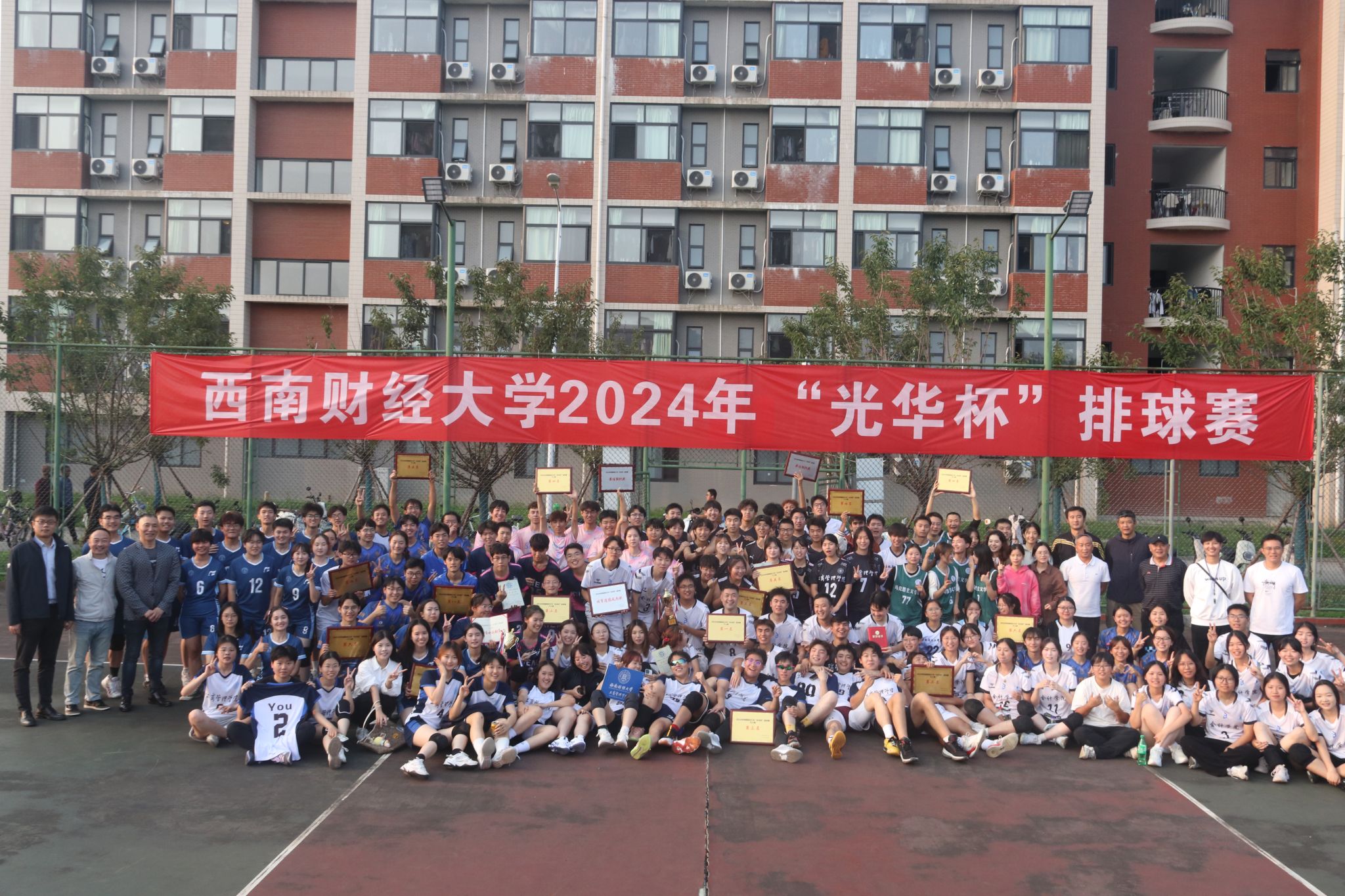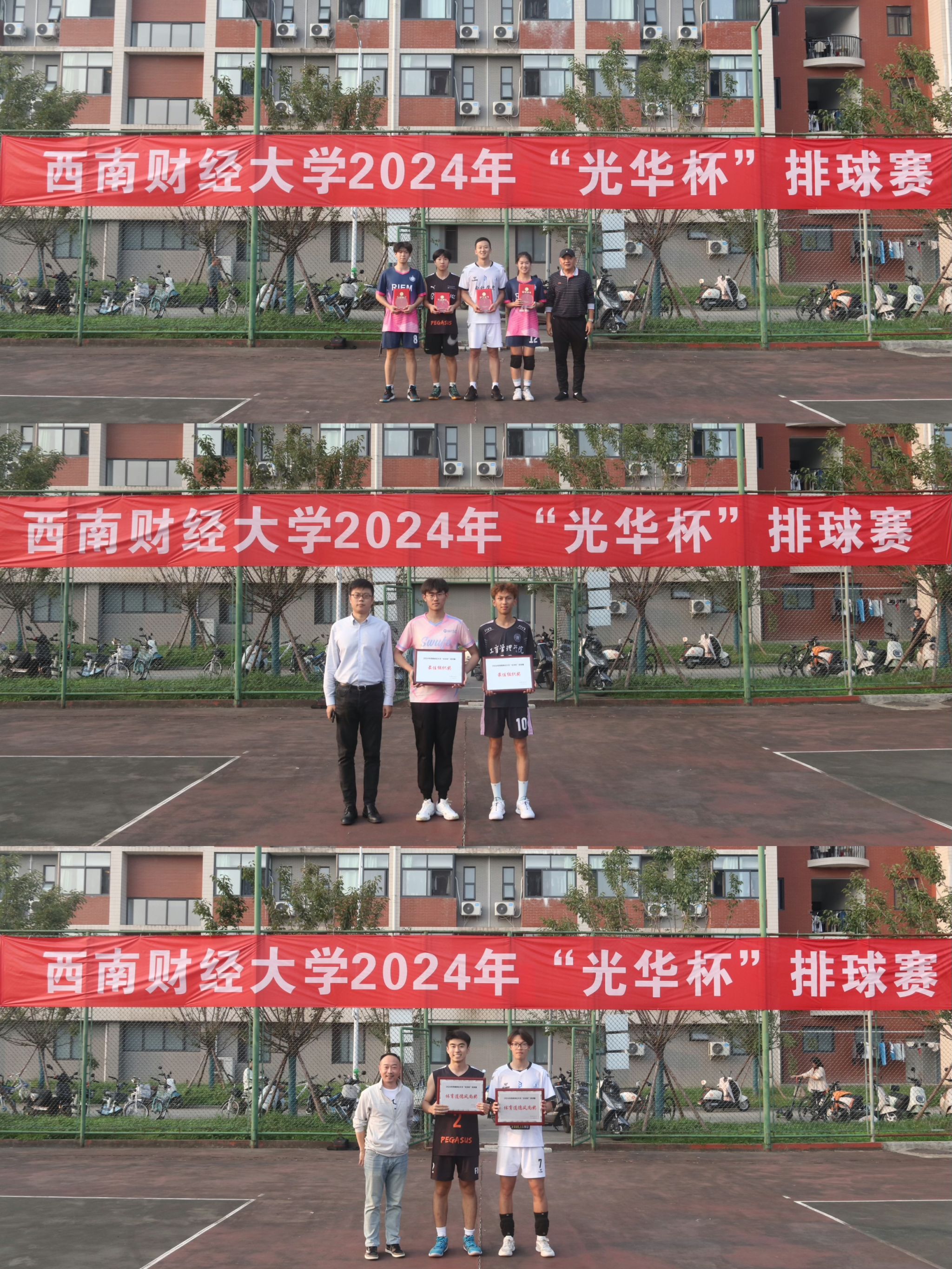 10月15日下午,“礼赞新时代·奋进新征程,迎百年校庆·铸西财辉煌”2024年西南财经大学 “光华杯”排球赛颁奖仪式在晨曦排球场举行。博鱼官方网站(中国)集团有限公司院长杨远波,党委书记周正宏,副院长阴涛、陈丛刊,副书记李治为获奖学院以及个人颁发了荣誉证书及奖牌。