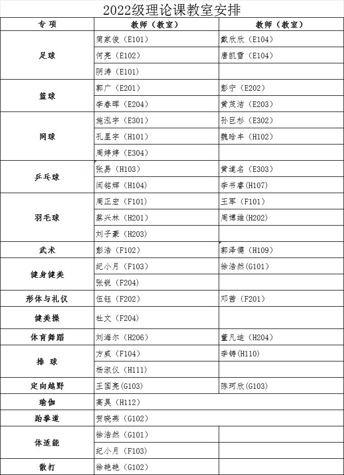 经教务处同意,本学期2022级、2023级本科生第1周体育课为博鱼官方网站(中国)集团有限公司理论课,3月4日起恢复户外教学。根据教室资源状况,现将理论课具体安排通知如下: