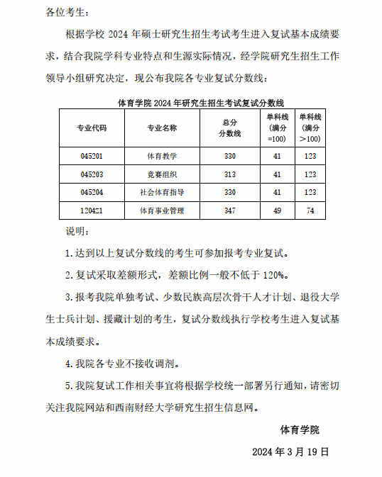 博鱼官方网站(中国)集团有限公司关于公布 2024 年硕士研究生招生考试复试分数线的通知