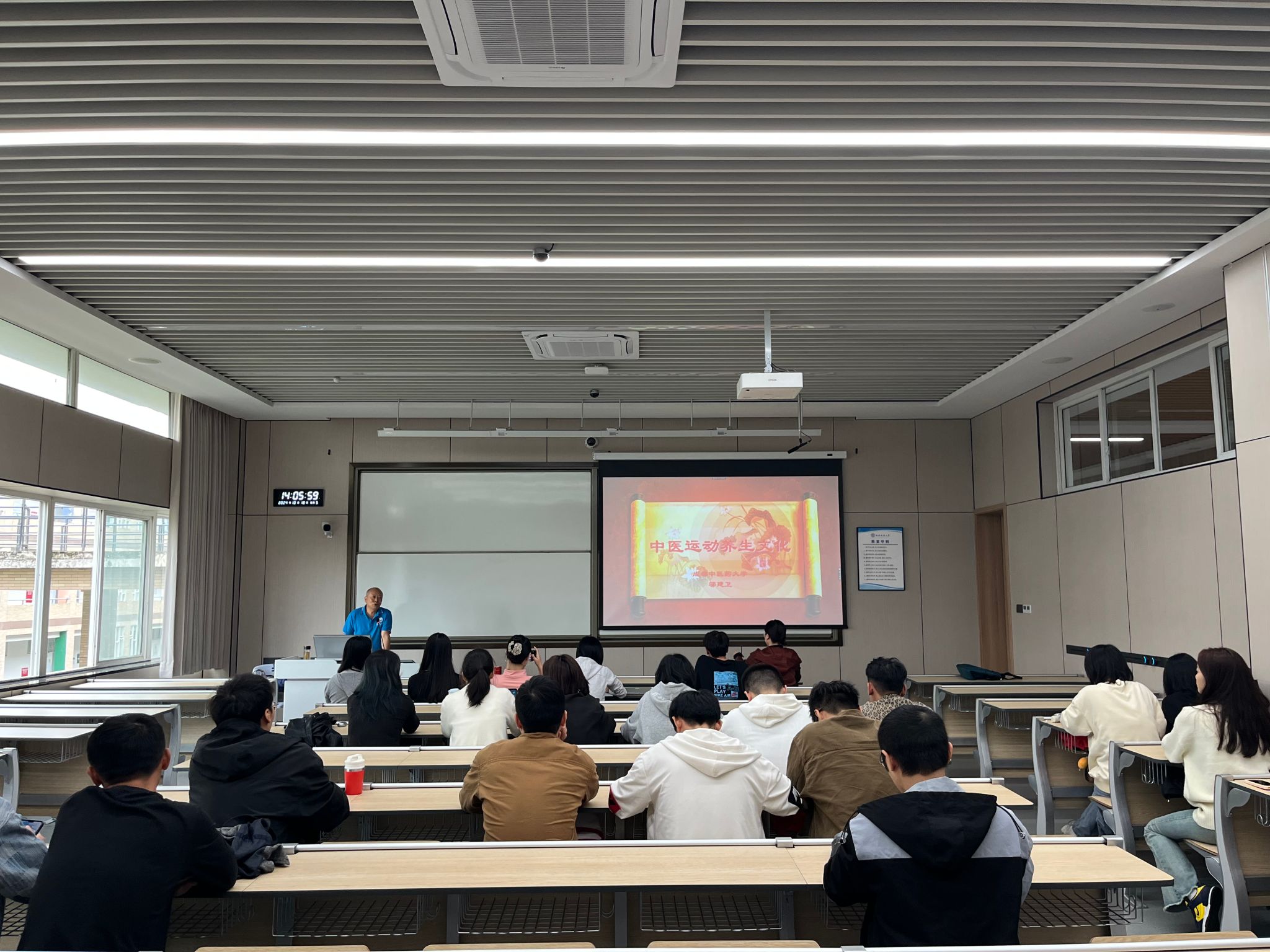 本次讲座的核心内容是“中医运动养生文化”,涵盖了养生保健之要义、养生保健的作用以及科学化的养生保健策略三大板块。邬建卫用通俗易懂的语句和日常生活中的案例,对养生与体育融合的概念进行了阐释。讲座向同学们推广中医药文化的精髓,进而使学生们能够系统地掌握科学化的中医运动养生保健技能,以促进个体健康维护和生命质量的提升。最后,邬教授与同学们进行了热烈的互动讨论。