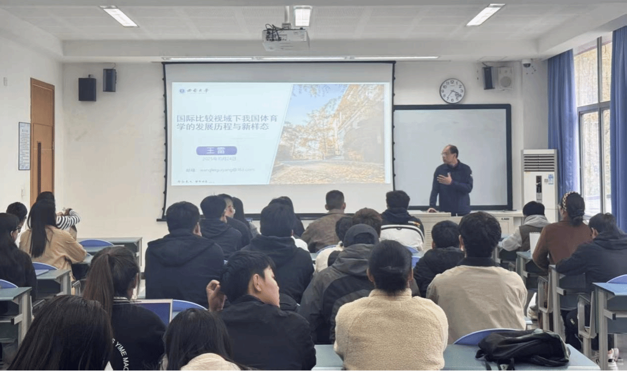 10月24日下午,西南大学博鱼官方网站(中国)集团有限公司副院长、博士生导师王雷教授应邀做客博鱼官方网站(中国)集团有限公司光华讲坛,在光华校区明德楼203教室作题为《我国体育学发展历程与展望》的学术讲座。博鱼官方网站(中国)集团有限公司刘辛丹教授主持讲座。
